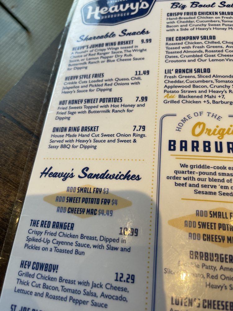 Heavy’s Barburger Menu